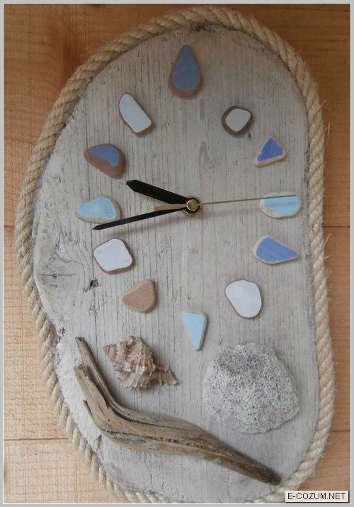 Basit tahta parçasını kalın bir iple çerçeveleyerek harika bir saat modeli ortaya çıkarılmış.